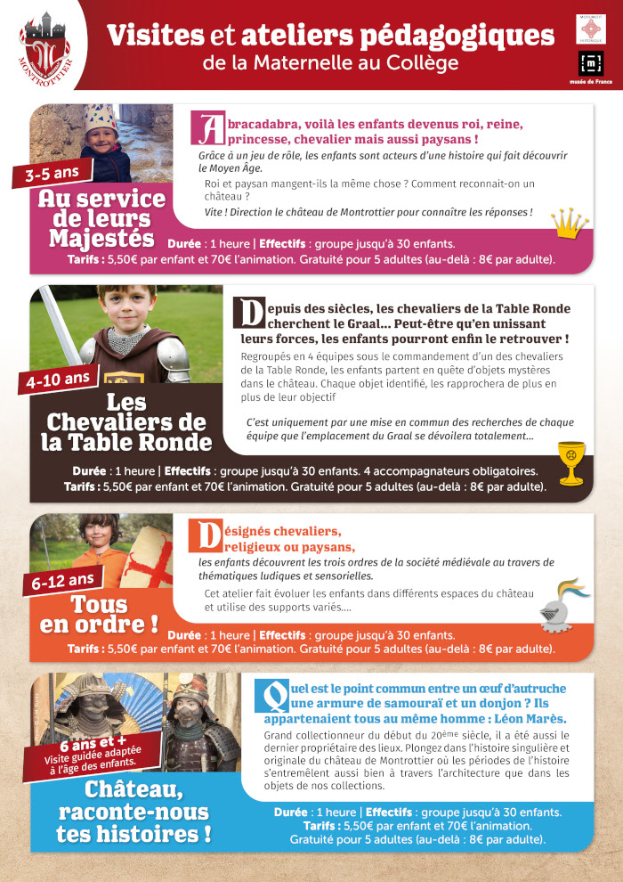 Visites, ateliers et activités pédagogiques pour scolaires de la maternelle au collège.